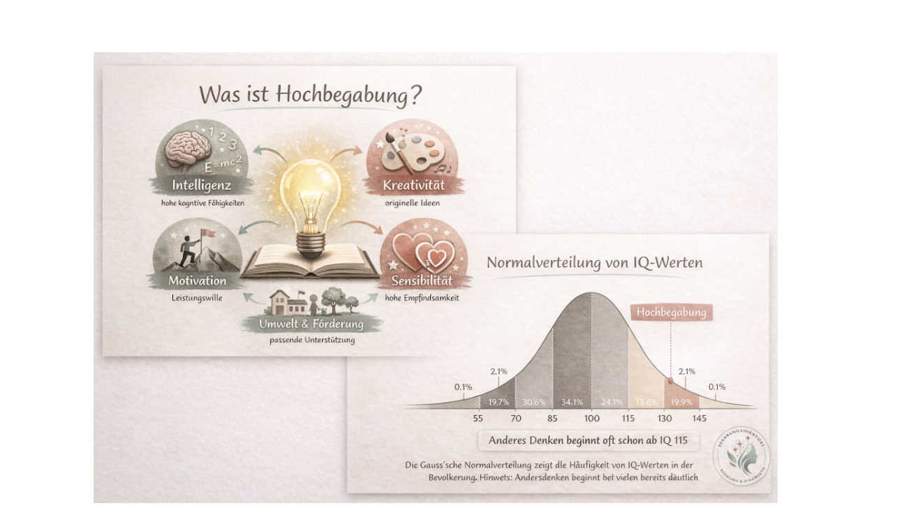 Wichtig ist die klare Abgrenzung: Hochbegabung ist keine Diagnose im klinischen Sinne und keine psychische Störung. Sie beschreibt ein kognitives Potenzial. Schwierigkeiten entstehen meist nicht aus der Begabung selbst, sondern aus fehlender Passung, mangelnder Förderung oder Missverständnissen im sozialen Umfeld.